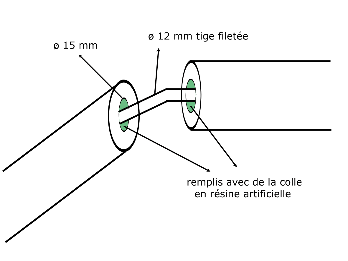 Tant l'utlisation d'une tige filetée, que l'utilisation d'une colle de résine artificielle sont absolument nécessaire pour éviter que les joints s'ouvrent.