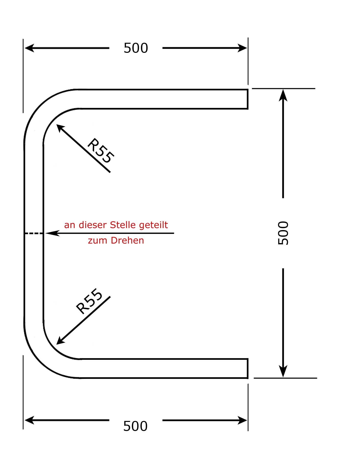 - Ecken mit Innenradien von 55 mm aufwärts;