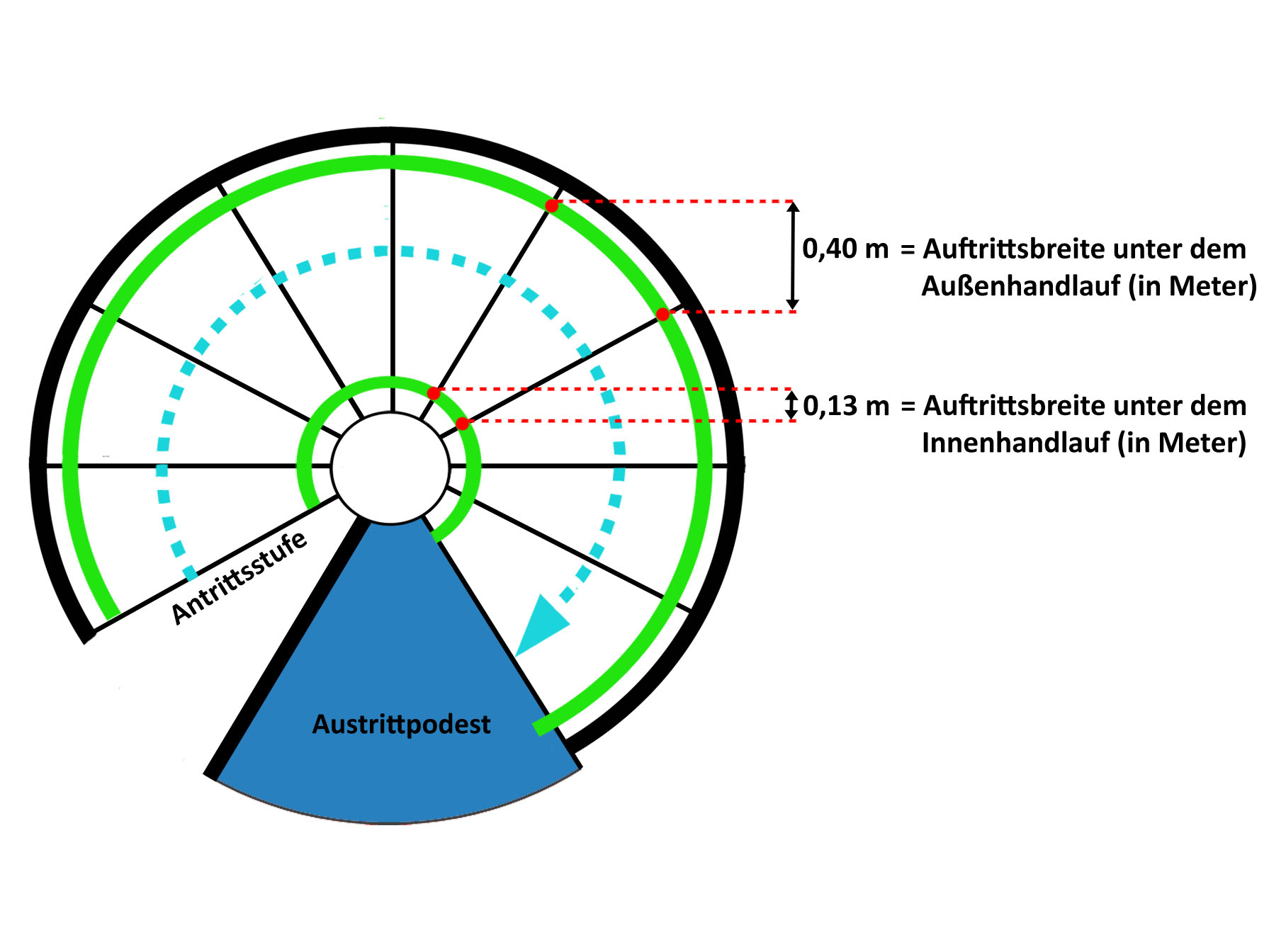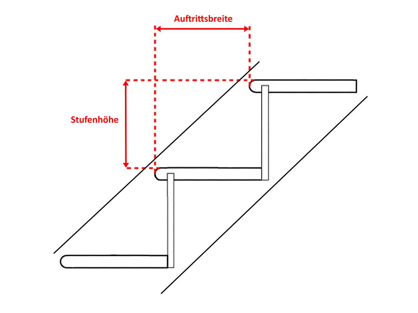 - Auftrittsbreite unter dem Innenhandlauf: 13 cm