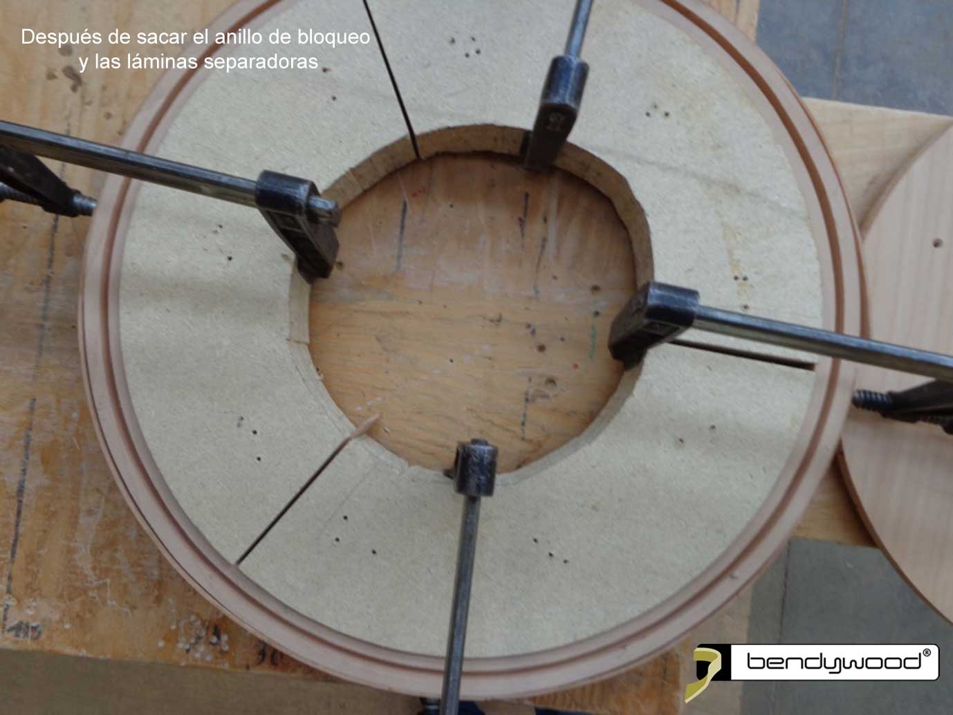 - Enseguida aplicar la cola, quitar el anillo de bloqueo y los 3 separadores de 3 mm, para que el anillo no se pueda bloquear contra del molde. Quitar el anillo de la plantilla una vez que la cola sea bien endurecida.