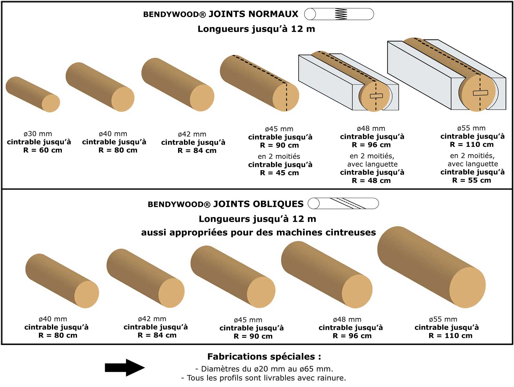 Pour des illustrations et des exemples, voir : Gabarits de cintrage pour le Bendywood®